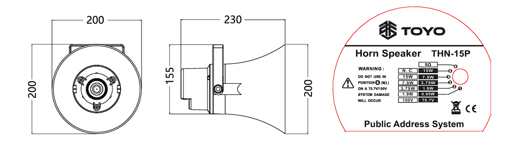 - Loudspeaker IP rating with 100 V line matching transformer